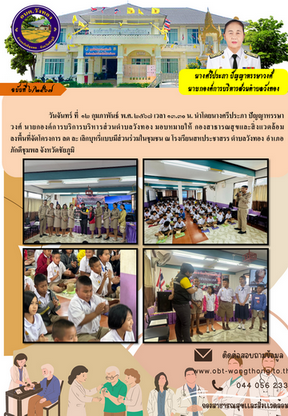 วันจันทร์ ที่ ๑๒ กุมภาพันธ์ พ.ศ. ๒๕๖๗ เวลา ๑๓.๓o น. นำโดยนางศรีประภา ปัญญาหรรษาวงศ์ นายกองค์การบริการบริหารส่วนตำบลวังทอง มอบหมายให้ กองสาธารณสุขและสิ่งแวดล้อม ลงพื้นที่จัดโครงการ
